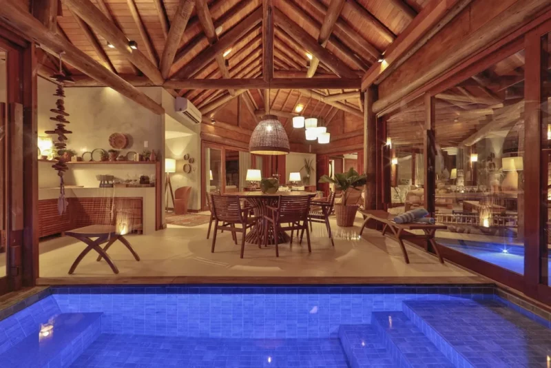 Com 100m² de área, oferecem piscina aquecida com hidromassagem, sauna a vapor ao ar livre, ofurô exclusivo, suíte master e sala reversível para crianças. Um verdadeiro convite ao descanso e à celebração dos sentidos.