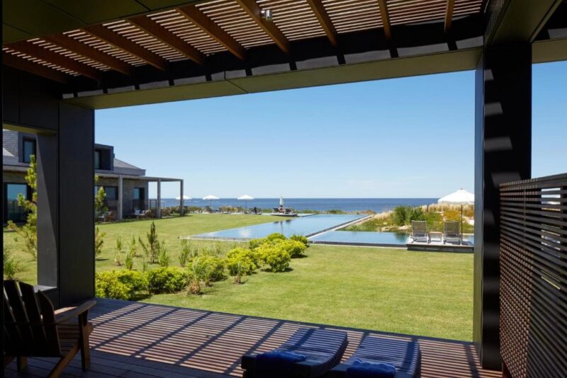 O edifício principal ainda oferece dez suítes amplas, todas com terraço privativo e, na maioria, vistas panorâmicas das dunas, da praia e do oceano.
