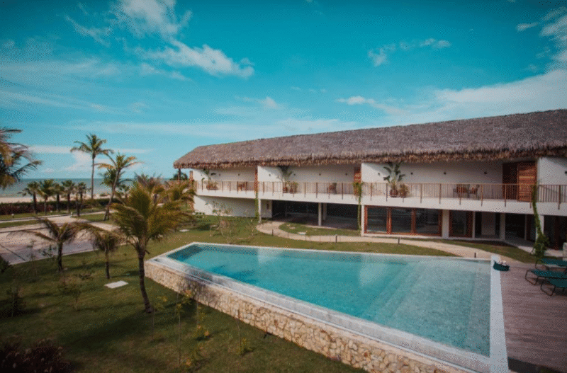 São 8 suítes com varanda vista mar, além de vilas completas — perfeitas para famílias, grupos ou viagens prolongadas. O hotel ainda oferece academia, spa com sauna e ofurô, brinquedoteca, piscina aquecida e quadras de tênis e beach tennis. Tudo isso com atendimento acolhedor e discrição absoluta.