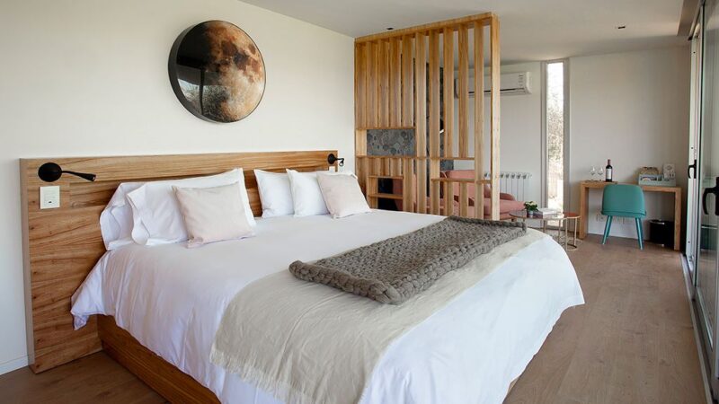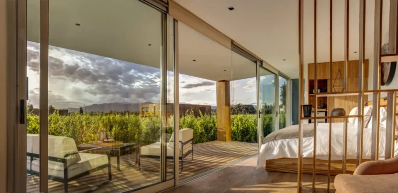 Membro dos Small Luxury Hotels of the World e listado no Guia Michelin, o hotel tem 24 acomodações distribuídas entre Quartos Classic, suítes Reserva, Grand Reserva duplex e a lendária Vineyard Loft — um pod futurista suspenso sobre o vinhedo por pilotis, com janelas no teto para contemplar o céu estrelado e jacuzzi privativa na varanda. Todos os quartos têm terraço privativo com vista para a paisagem, enxoval de algodão egípcio, minibar gratuito e décor contemporâneo com toques de madeira e tecidos ricos. O hotel produz ainda os seus próprios rótulos de Malbec — a linha Marantal — disponíveis para degustação exclusiva dos hóspedes.