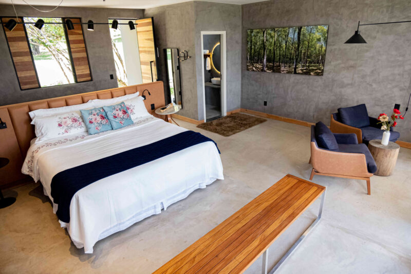 O estilo é aquele equilíbrio raro entre sofisticação e alma de fazenda. Poucos quartos — e essa é justamente a proposta. As suítes Deluxe, Premium Família, Master e a Master com Banheira têm varandas com vista para a natureza, enxoval de qualidade, ar-condicionado, TV de tela plana e, nas categorias superiores, banheiras que convidam a uma pausa longa depois de um dia percorrendo o Inhotim. O hotel se orgulha de manter o atendimento familiar, com os próprios proprietários recebendo os hóspedes — e isso aparece nas avaliações o tempo todo como um diferencial genuíno.