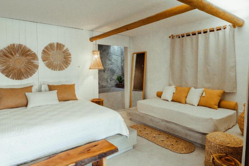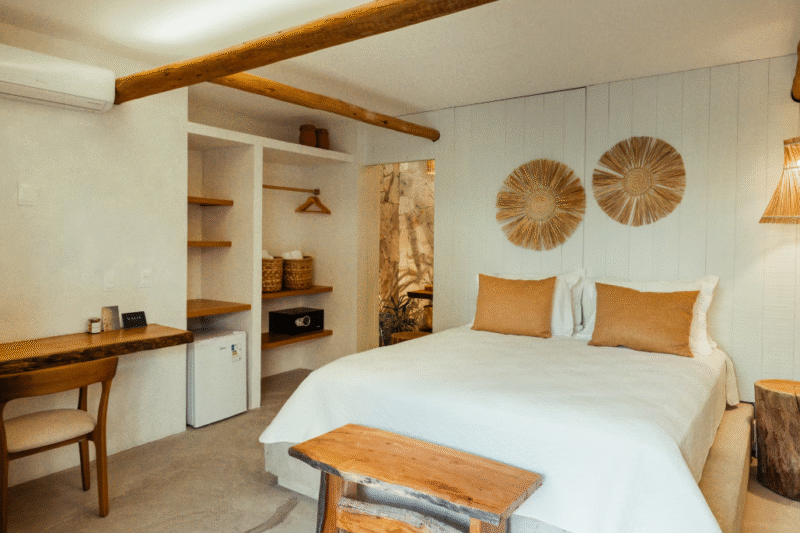 O projeto do Kalit Hotel foi desenvolvido para respeitar o entorno: materiais naturais, técnicas construtivas alinhadas à cultura dos povos originários e uma estética que se mistura ao cenário da Ilha. O resultado é um espaço leve, acolhedor e totalmente integrado à natureza exuberante da região.