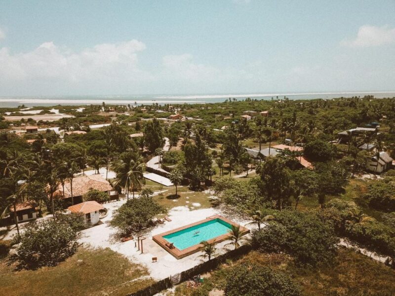 Construídos em uma área de 2 hectares, os chalés foram pensados para se integrar de forma orgânica ao ambiente, utilizando madeira local, tijolo e palha. A vegetação nativa cria uma separação natural entre as acomodações, garantindo privacidade absoluta e uma conexão quase sem fronteiras entre interior e exterior.