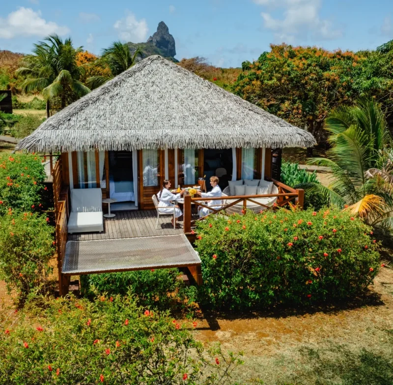 Em plena Baía do Sueste, o NANNAI Noronha é um refúgio boutique que combina privacidade, sofisticação e o encontro mais íntimo com a natureza exuberante da ilha. São apenas dez acomodações suspensas sobre palafitas, todas com vista para o mar — uma proposta que abraça o silêncio, a luz natural e o ar fresco que só Noronha proporciona.