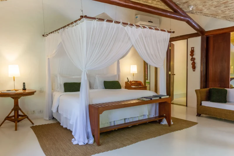 São 28 acomodações rústico-chic com toques tropicais em perfeita harmonia com o ambiente. Todas possuem varanda com rede, decoração acolhedora, móveis artesanais e contato direto com os jardins ou com o mar.