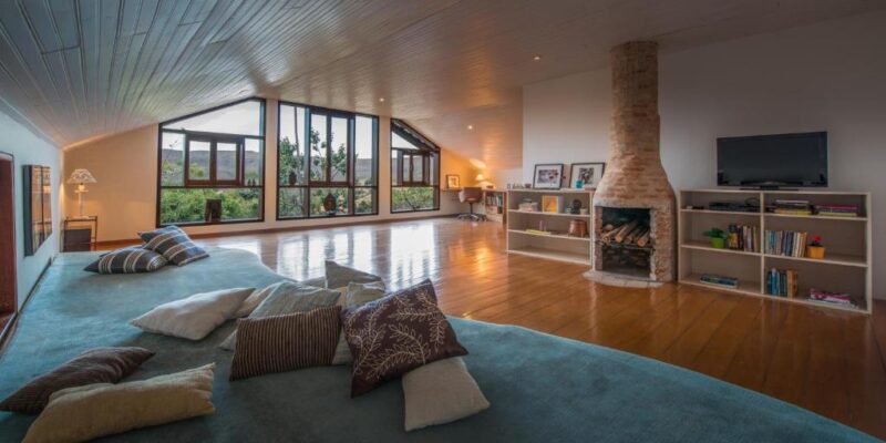 Ampla e versátil, a Zen Loft é ideal para famílias, grupos ou praticantes de yoga e meditação. Com dois ambientes, reúne cama queen, duas camas de solteiro, sala espaçosa com lareira, sofá de cinco metros e vista panorâmica para as montanhas. Um espaço generoso e acolhedor.