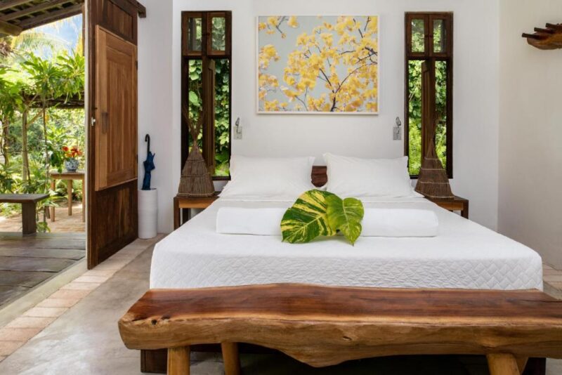 Alguns bangalôs contam com ofurô ao ar livre, piscina privativa, gazebo ou jardim interno. Em todos, o conforto é garantido: lençóis de algodão, ar-condicionado, amenities sustentáveis e pequenos mimos que fazem a diferença.