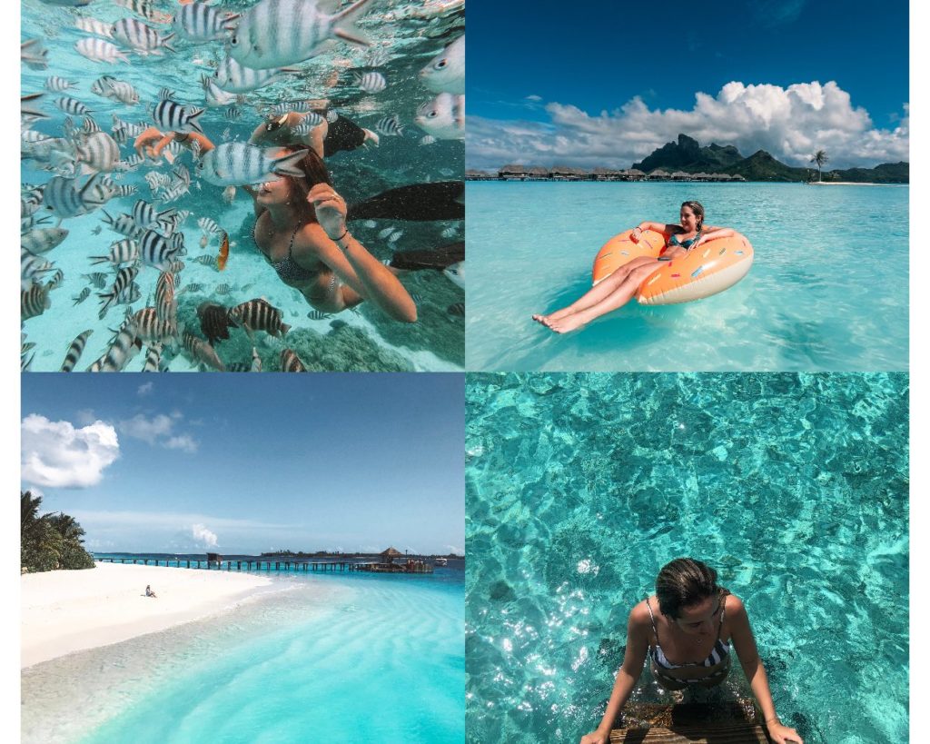 Tanto Maldivas quanto Bora Bora oferecem águas mornas e agradáveis o ano inteiro, variando entre 26°C e 29°C.